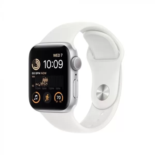 Apple Watch SE GPS, 44mm Silver Aluminium Case, White Sport Band