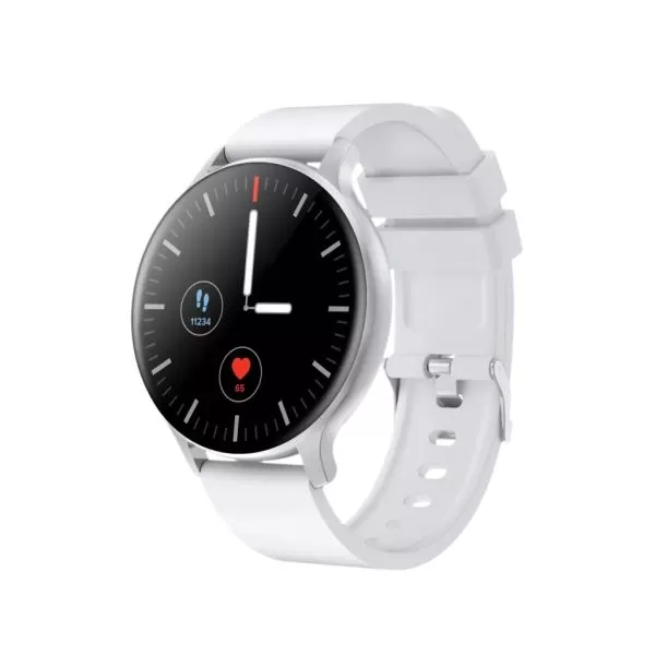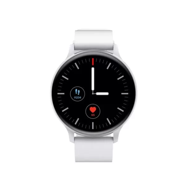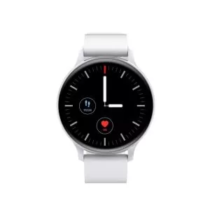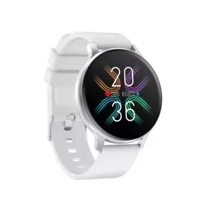 Smartwatch, Realtek 8762CK, 1.28"TFT 240x240px; RAM : 160KB, Lithium-ion polymer battery, 3.7V 190mAh Include, Silver Zinc alloy middle frame + plastic bottom case+ white Silicone strap + silver strap buckle, 44.9x 10.9mm, strap: 20x220mm, 50.64g