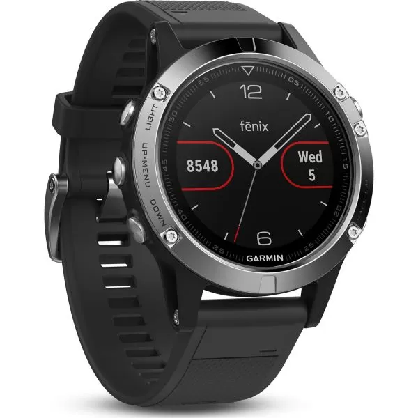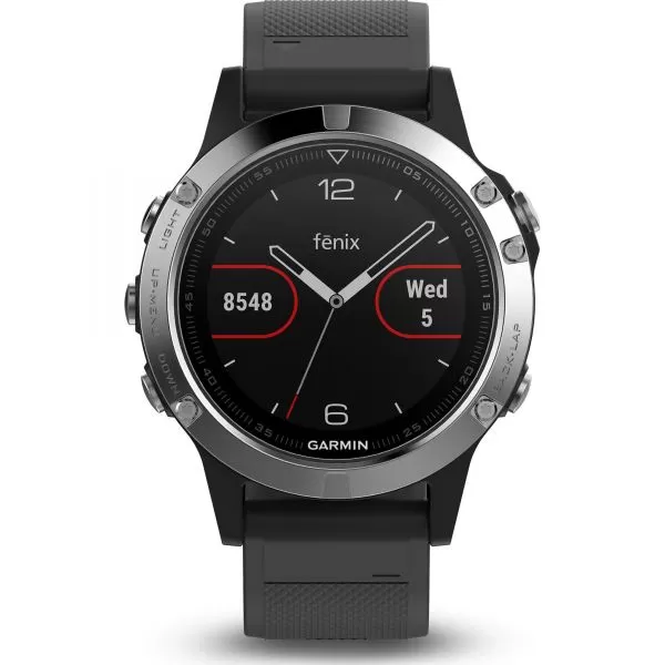 Smartwatch Garmin Fenix 5, HR, GPS, Silver, Silicone Black