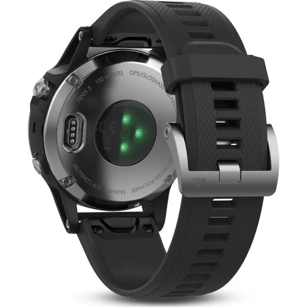 GPS Watch Garmin FENIX 5 Black/Silver , 240 x 240 pixels; sunlight- visible, always-on, low power, colorful display, Rechargeable lithium- ion: Up to 2 weeks in smartwatch mode (depending on settings), up to 24 hours in GPS mode, and up to 75 hours in UltraTrac battery saver mode, Water rating: 10 ATM, Heart rate monitor, Calculates calories burned, Aerobic Training Effect (measures impact of an activity on your fitness), Step counter, Auto goal(learns your activity level and assigns a daily step goal), GPS-enabled