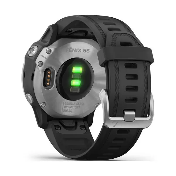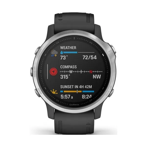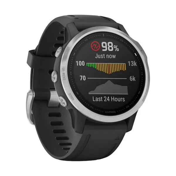 fenix 6S Silver w/Black Band (no MAP/Music), Gorilla glass, Internal storage 64mb, Bluetooth, Garmin play, GPS up to 25h.