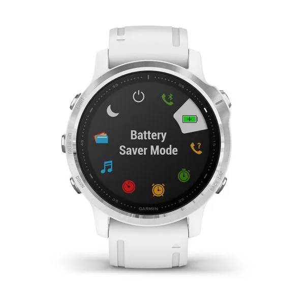fenix 6S Silver w/White Band (no MAP/Music), Gorilla glass, Internal storage 64mb, Bluetooth, Garmin play