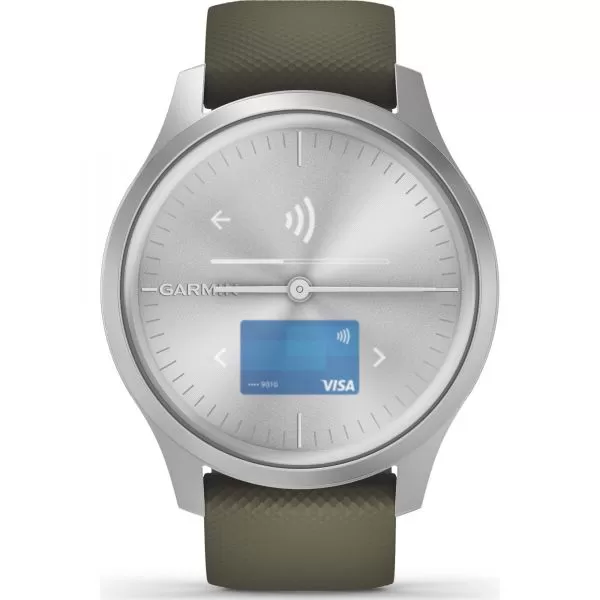 Smartwatch Garmin Vivomove Style, Silver/Moss Green, Silicone Band
