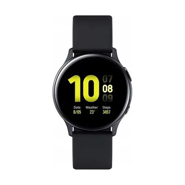 Smartwatch Galaxy Watch Active 2, 44 mm, Wi-Fi, Negru - Aluminum - cadran rotativ touchscreen Super AMOLED 1.35" - 360 x 360 pixeli(364 ppi), corp aluminiu - Full Color Always-on Display; protectie Corning Gorilla Glass DX + - CPU Dual Core Samsung Exynos 9110, frecventa 1.15 GHz; GPU: Mali-T720 - memorie interna 4 GB + 768 MB RAM - sistem operare Tizen Wearable OS 4.0 - rezistenta la apa: 5ATM + IP68; MIL-STD-810G - rezistenta la socuri - conectivitate: Wi-Fi 802.11 b/g/n 2.4GHz, bluetooth 5.0, NFC, GPS/Glonass/Beidou - senzori - accelerometru / giroscop / barometru / ritm cardiac / lumina ambientala - destinat pentru scopuri generale de wellness si fitness, comenzi vocale - capacitate baterie(incorporata) - 340 mAh - autonomie baterie: pana la 90 ore; GPS activat- pana la 15 ore - wireless charging WPC Inductive (Wireless Power Consortium) - compatibilitate: Android 5.0+, minimum 1.5 GB RAM; iPhone 5+, iOS 9.0+ - dimensiuni 44 x 44 x 10.9 mm / greutate 30 g; latime curea:20 mm, interschimbabila - material carcasa / curea: aluminiu / fluoroelastomer - accesorii incluse: suportul de încărcare wireless, ghid de pornire rapidă