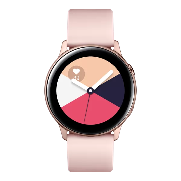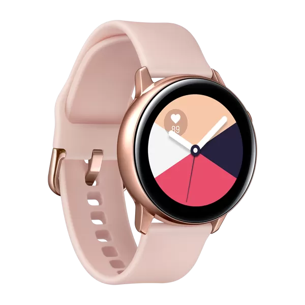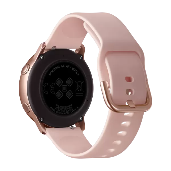 Smartwatch Galaxy Watch Active, Auriu - cadran rotativ touchscreen multitouch Circular Super AMOLED 1.1" - 360 x 360 pixeli(463ppi) - corp inox - Full Color Always-on Display; protectie Corning Gorilla Glass - CPU Dual Core Samsung Exynos 9110, frecventa 1.15 GHz - memorie interna 4 GB + 768 MB RAM - sistem operare Tizen Wearable OS 4.0 - rezistenta la apa: 5ATM + IP68; MIL-STD-810G - rezistenta la socuri - conectivitate: Wi-Fi 802.11 b/g/n, bluetooth 4.2, NFC, GPS/Glonass/Beidou/Galileo - senzori - accelerometru / giroscop / barometru / ritm cardiac / lumina ambientala - destinat numai pentru scopuri generale de wellness si fitness - capacitate baterie(incorporata) - 230 mAh - autonomie baterie: pana la 90 ore; GPS activat- pana la 15 ore - wireless charging WPC Inductive (Wireless Power Consortium) - compatibilitate: Android 5.0+, minimum 1,5 GB RAM; iPhone 5+, iOS 9.0+ - dimensiuni 39.5 x 39.5 x 10.5 mm / greutate 25 g(fara bratara); latime curea:20 mm - material carcasa / curea: aluminiu / cauciuc - accesorii incluse: suportul de încărcare wireless, curea marimea S (smal), curea marimea L (large), ghid de pornire rapidă
