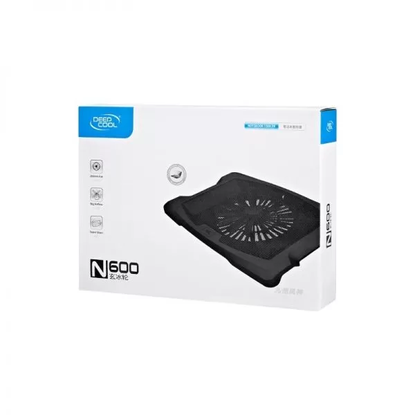 Deepcool N600, structura din mesh metalic si plastic, dimensiune notebook: 17” (maxim), 200mm fan (700 RPM, 73.42 CFM, 23 dBA), design anti-alunecare, alimentare prin portul USB, dimensiuni: 395x283x63mm