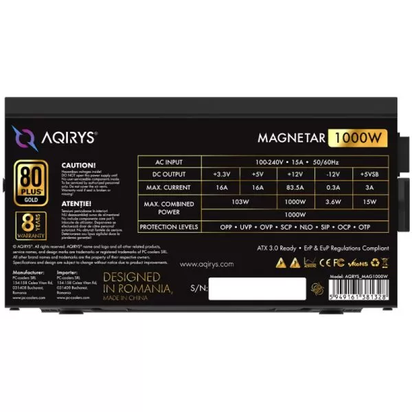 • sursa de alimentare 1000W pentru sisteme de gaming