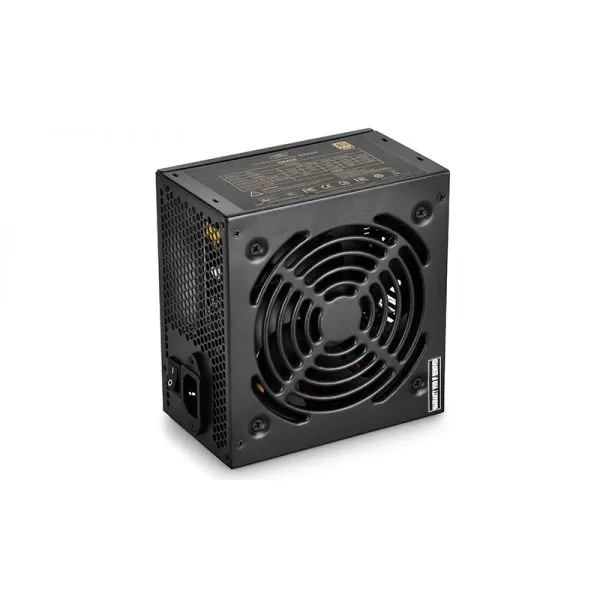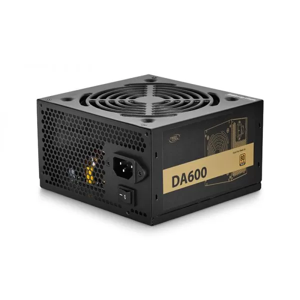 Deepcool DA600 600W PSU, certificata 80 PLUS Bronze, eficienta 85%, single rail (46A), ventilator silentios de 120mm cu control termic automat, 4x 6+2pin PCIE, 5x SATA, 3x Molex, 1x 4+4pin EPS12V, OVP/SCP/OTP/UVP/OPP, Active PFC, dimensiuni: 150 x 140 x 86mm