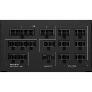 | Conectori | 1 x 20+4 Pin ATX, 2 x 4+4 Pin ATX/EPS, 8 x 6+2 PCI-E, 12 x SATA, 1 x 16 Pin PCI-E 12VHPWR , 6 x Molex, 2 x Floppy |