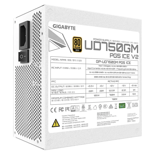 | Caracteristici Sursa PC Gigabyte UD750GM PG5 V2 ICE, Modulara, 750W, White: | |