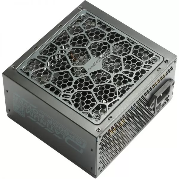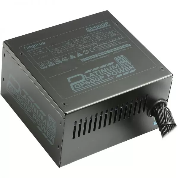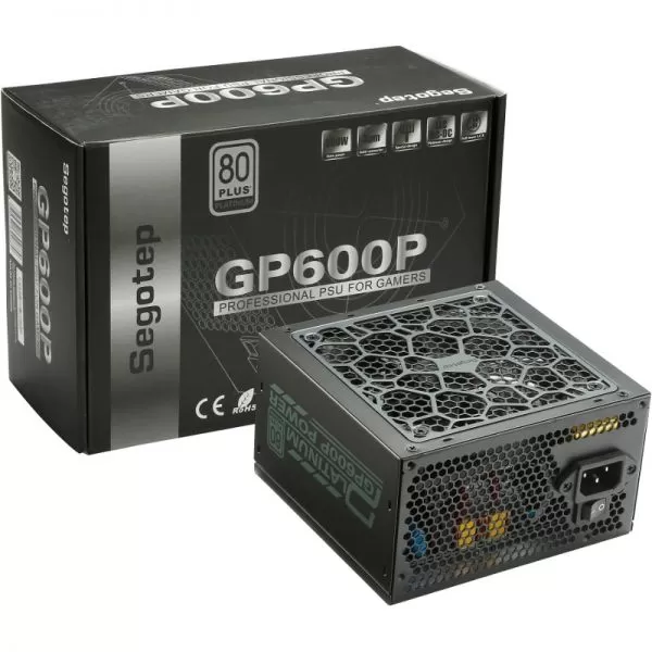 Segotep GP600P 500W PSU, certificata 80 PLUS Platinum, eficienta 92.72%, single rail (41A), ventilator silentios de 120mm cu control termic automat, 2x 6+2pin PCIE, 5x SATA, 3x Molex, 1x 4+4pin EPS12V (lungime 600mm), protectii OVP/OCP/OPP/SCP/UVP, Active PFC, ATX 12V v2.31