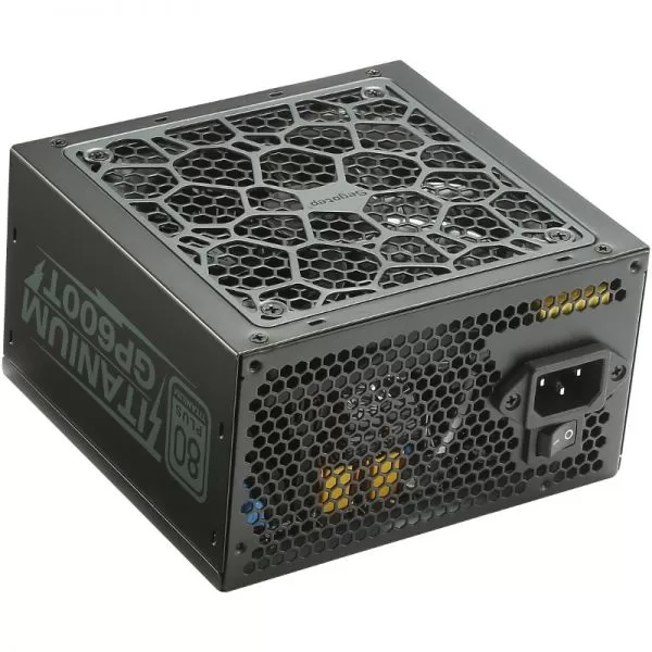 Segotep GP600T 500W PSU, certificata 80 PLUS Titanium, eficienta maxima 96%, single rail (41A), tehnologie DC-DC, ventilator silentios de 120mm cu control termic automat, 2x 6+2pin PCIE, 5x SATA, 3x Molex, 1x 4+4pin EPS12V (lungime 650mm), protectii: OVP/OCP/OPP/SCP/UVP, Active PFC, ATX 12V v2.31