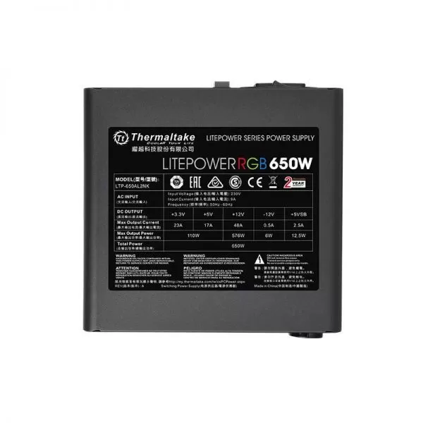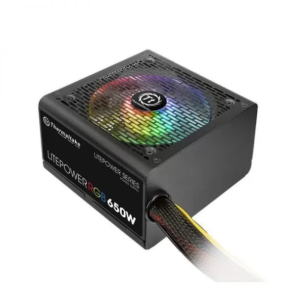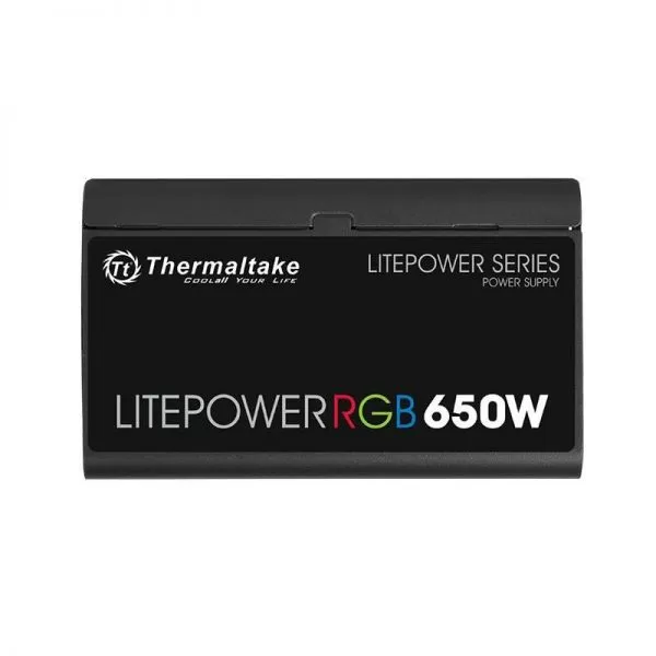 Sursa Thermaltake Litepower 650W iluminare RGB, single rail (48A), ventilator silentios de 120mm cu iluminare RGB si control termic automat, 2x 6+2pin PCIE, 5x SATA, 6x Molex, 1x Floppy, 1x 4+4pin EPS12V, 1x 24pin, SCP/OVP/OPP, Active PFC, compatibila cu standardele ATX 12V V2.3 & EPS 12V, dimensiuni (w/h/d): 150mm x 86mm x 140mm