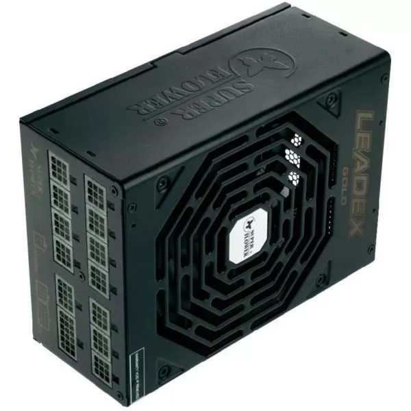 Super Flower Leadex Gold 1300W Modular PSU, certificata 80 PLUS Gold, eficienta 91.75%, cabluri full modulare plate pentru un wire management mai bun, single rail (108.3A), ventilator silentios de 140mm (Fluid Dynamic Bearing) cu tehnologie ECO Intelligent Thermal Control System (ventilatorul nu incepe sa se roteasca pana ce temperatura interna a sursei nu atinge 55°C), condensatori japonezi (Nippon Chemi-Con), tranzistori Infineon (Cool MOS), 6x 6+2pin PCIE, 10x SATA, 5x Molex, 1x Floppy, 1x 4+4pin EPS12V,, 1x 8pin EPS12V, protectii OVP/OCP/OPP/SCP/UVP, Active PFC, ATX 12V v2.2, EPS 12V v2.91, SSI EPS 12V v2.92, dimensiuni: 200x150x86mm, certificari: cTUVus / TUV / CB / CE / FCC / C-Tick / BSMI / RoHS / CCC