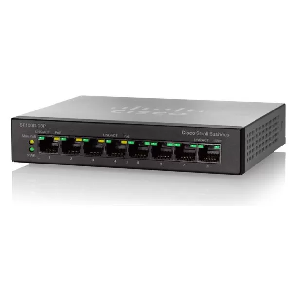 Switch Cisco SF110D-08HP, fara management, cu PoE, 8x100Mbps-RJ45 (4xPoE)