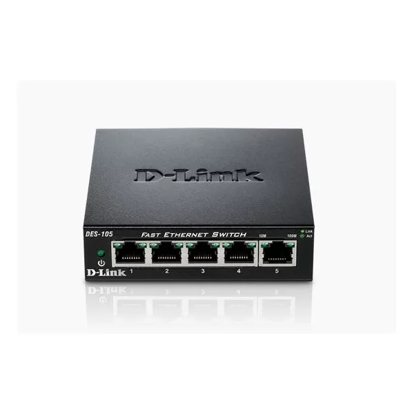 D-Link’s DES-105 Fast Ethernet switch provides a cost-effective way for SOHO and SMB to create a small network and connect computers, wireless Access Points, IP cameras, network printers and other Ethernet devices quickly and easily without complicated configurations. This switch comes with 5 Fast Ethernet ports with an auto-sensing function to detect the maximum speed of the connected devices, allowing you to run your network with the best possible performance. Its fanless design makes this switch completely silent, ideal for offices, libraries or meeting rooms.