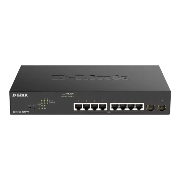 Switch D-Link DGS-1100-10MPV2, cu management, cu PoE, 8x1000Mbps-RJ45 (8xPoE) + 2xSFP