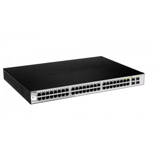 Switch D-Link DGS-1210-48, 44 porturi Gigabit, 4 porturi combo 1000BaseT/SFP, Capacity 96Gbps, 8K MAC, 19" Rackmount, WebSmart, 2*fan