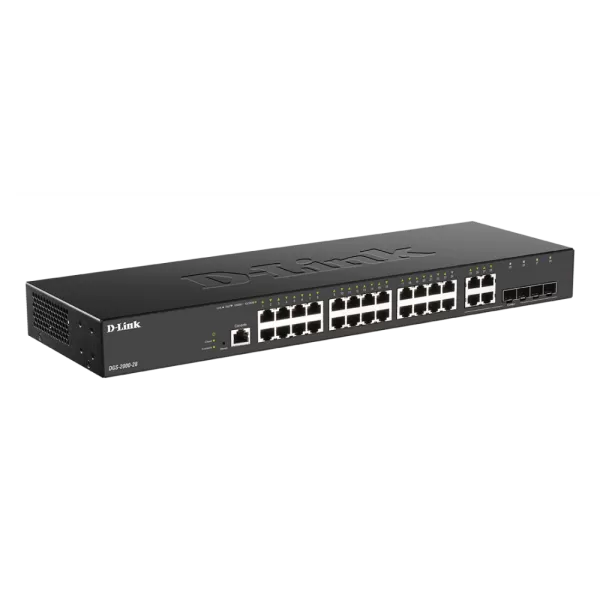 Switch D-Link DGS-2000-28, 24 porturi Gigabit, 4 porturi combo gigabit SFP, Capacity 56Gbps, 256 MB DDR3 SDRAM, flash: 32MB, consum 17.32 Watt, Rack-mountable 1U, Switch - 28 ports - L3 - Managed.