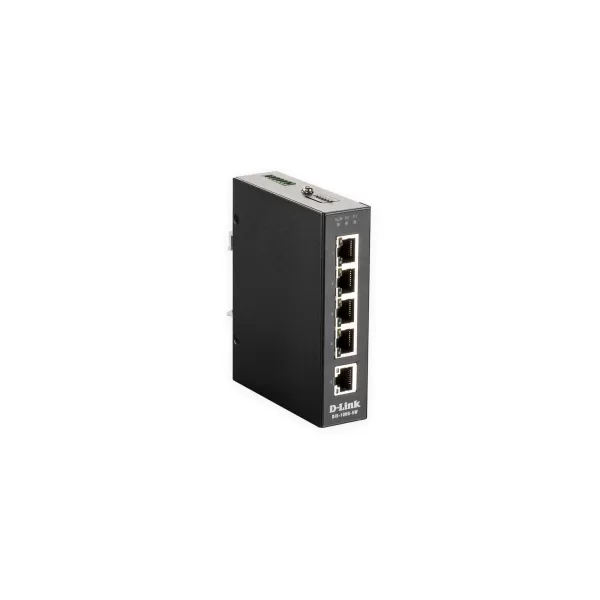 D-link unmanaged switch, DIS-100G-5W; - 5 Port Unmanaged Switch with 5 x 10/100/1000BaseT(X) ports - Industrial Gigabit Unmanaged Switch - 5 x 100/1000BasetT Auto-Negotiating Ports - Store and forward, L2 wire-speed/non-blocking switching engine - Redundant Input Terminals, Reverse Power Protection and Overload Current Protection - Input Voltage Range 12-58 VDC - Power Consumption 3.5W @ 12VDC, 3.57W @ 48VDC - Multicast/Broadcast/Flooding Storm Control - IP-30 Ingress Protection - Wide Operating Temperature Range -40°to 75°C - Certifications: UL 60950-1, CE, FCC, NEMA-TS2 - Fanless design - Weight 0.295 kg - DIN-Rail mounting and Wall mounting installation