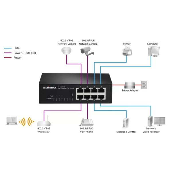 Switch Edimax ES-1008PHE, fara management, cu PoE, 8x100Mbps-RJ45 (4xPoE)