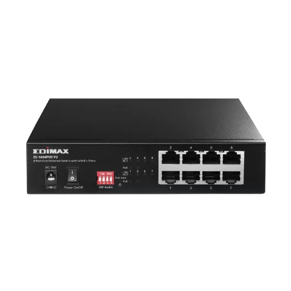 Switch Edimax ES-1008PHE V2, fara management, cu PoE, 8x100Mbps-RJ45 (4xPoE+)