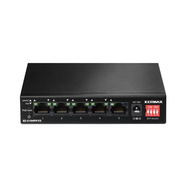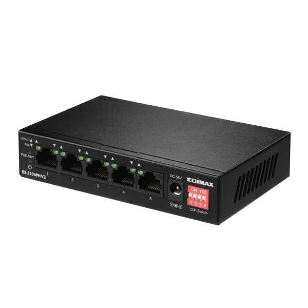 Switch Edimax ES-5104PH v2, fara management, cu PoE, 5x100Mbps-RJ45 (4xPoE+)