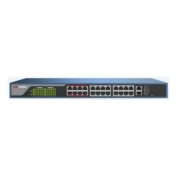 Switch POE 24 porturi Hikvision DS-3E1326P-E; L2, Web managed, 24 100M PoE port, 2 1000M combo port, 802.3af/at, PoE power budget 370W.