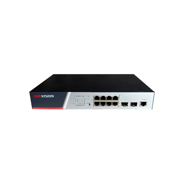 Switch Hikvision DS-3E2510P(B), 8 Gigabit Poe electrical ports and 2 Gigabit / SFP optical ports, Address Table 8 K, Support binding of IP, MAC, port and VLAN