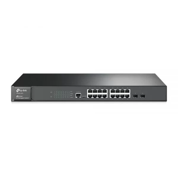 TP-Link JetStream 16-Port Gigabit L2 Managed Switch with 2 SFP Slots, T2600G-18TS, IEEE 802.3i, IEEE 802.3u, IEEE 802.3ab, IEEE802.3z, IEEE 802.3ad, IEEE 802.3x, IEEE 802.1d, IEEE 802.1s, IEEE 802.1w, IEEE 802.1q, IEEE 802.1x, IEEE 802.1p, 16* 10/100/1000Mbps RJ45 Ports (Auto Negotiation/Auto MDI/MDIX), 1* Micro-USB Console Port, Switching Capacity: 36Gbps, Packet Forwarding Rate: 26.78Mpps, 11.47W