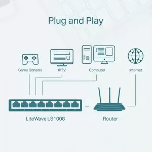 SWITCH TP-LINK 8 porturi 10/100 Mbps LiteWave , "LS1008" (include timbru verde 1 leu)