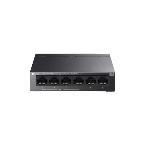 TP-LINK SWITCH LS106P, 6-Port 10/100Mbps Desktop Switch with 4-Port PoE+, 10BASE-T: UTP category 3, 4, 5 cable (maximum 100m), 100BASE-TX: UTP category 5 or above cable (maximum 100m), power input 220~240V, 50/60Hz (NV)
