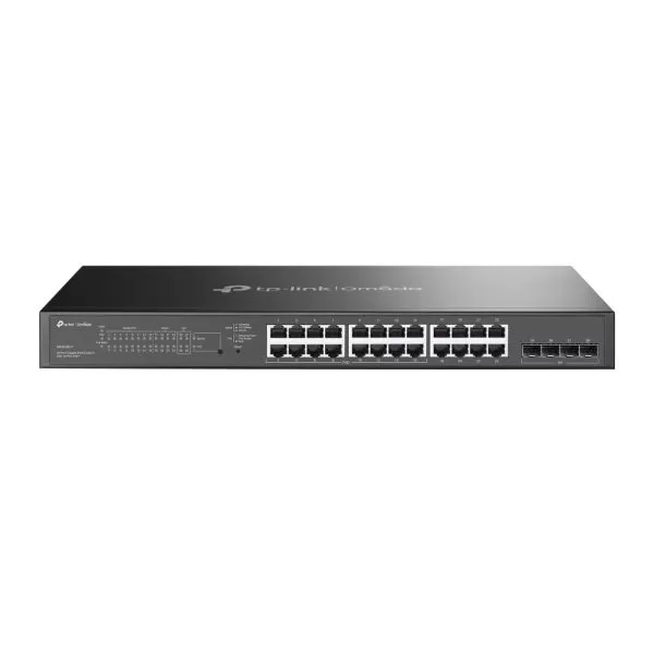 Omada 28-Port Gigabit Smart Switch with 16-Port PoE+ PORT: 24× Gigabit Ports (16×PoE+ and 8× Non-PoE), 4× Gigabit SFP Slots SPEC: 16× 802.3at/af, 150 W PoE Power, 1U 19-inch Rack-mountable Steel Case, Fanless FEATURE: Integration with Omada SDN Controller, Static Routing, 802.1Q VLAN, STP/RSTP/MSTP, IGMP Snooping, 802.1p/DSCP QoS, ACL, 802.1x, Radius/Tacacs+ Authentication, LACP, CLI, SNMP, Dual Image, IPv6