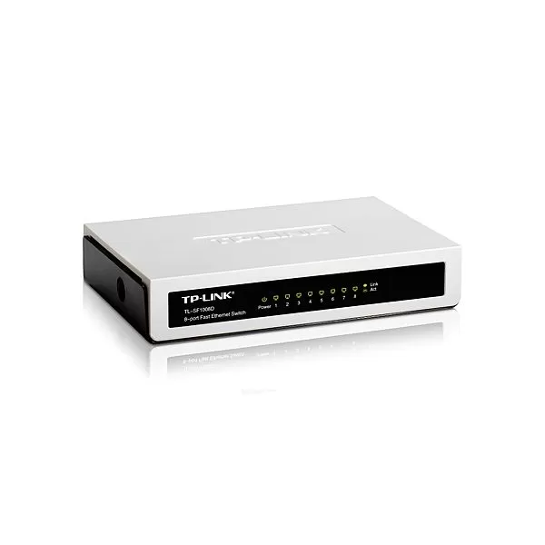 TL-SF1008D Fast Ethernet Switch provides 8 10/100Mbps Auto-Negotiation RJ45 ports. All ports support Auto MDI/MDIX function, eliminating the need for crossover cables or Uplink ports. Featuring non-blocking switching architecture, TL-SF1008D forwards and filters packets at full wire-speed for maximum throughput. With 10K Jumbo frame, the performance of large files transfers is improved significantly. And IEEE 802.3x flow control for Full Duplex mode and backpressure for Half Duplex mode alleviate the traffic congestion and make TL-SF1008D work reliably.