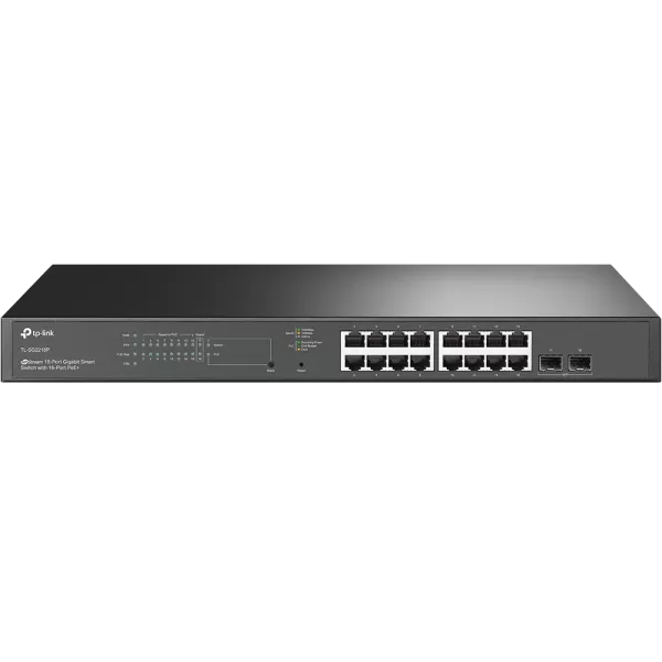 Switch TP-Link TL-SG2218P, 16 porturi Gigabit, 2 Gigabit SFP, 16 porturi POE, Buget POE: 150W, Fanless, Switching Capacity: 36 Gbps, Packet Forwarding Rate: 26.78 Mpps, Rack Mountable.