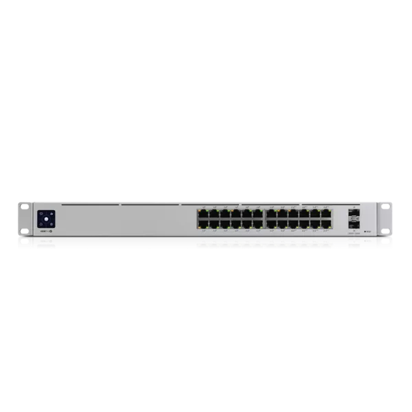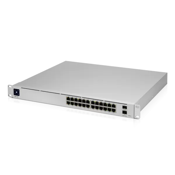 Ubiquiti UniFi pro switch, USW-PRO-24-POE, 802.3at/bt PoE Gigabit Switches with Layer 3 Features and SFP+, auto-sensing 802.3at PoE+ and 802.3bt PoE++. Integrated Fans for Near-Silent Cooling, (16) Gigabit RJ45 ports with 802.3af/at, (8) Gigabit RJ45 ports with 802.3bt, (2) 1/10G SFP+ ports.