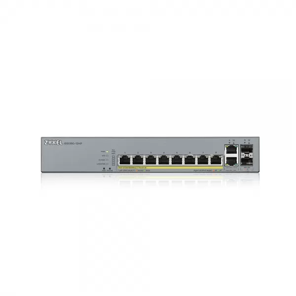 Switch ZyXEL GS1350-12HP, cu management, cu PoE, 10x1000Mbps-RJ45 (8xPoE) + 2xSFP
