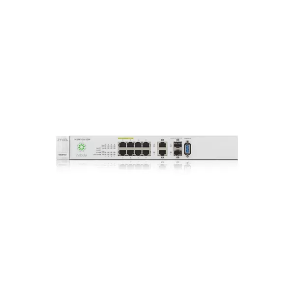 Switch ZyXEL Nebula NSW100-10P, cu management L2, cu PoE, 8x1000Mbps-RJ45, 2x1000Mbps-SFP/RJ45 (combo)