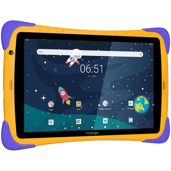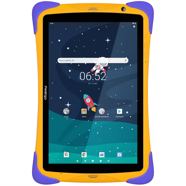 Prestigio SmartKids UP, 10.1" (1280*800) IPS display, Android 10 (Go edition), up to 1.5GHz Quad Core RK3326 CPU, 1GB + 16GB, BT 4.0, WiFi, 0.3MP front cam + 2.0MP rear cam, USB Type-C, microSD card slot, 6000mAh battery. Color: orange-violet