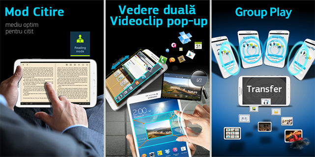 Aceasta tableta are tot ceea ce va este necesar pentru a va bucura de experienta multimedia! Modul Citire regleaza automat ecranul la nivelurile optime pentru a preveni obosirea ochilor cand cititi pentru perioade mai lungi de timp. Pentru a face multitaskingul si mai usor, aveti la dispozitie functia Vedere duala, care va permite sa vedeti 2 ecrane simultan, pentru a nu mai fi nevoit sa derulati inainte si inapoi si puteti astfel sa vedeti totul dintr-o singura privire. Pop-up video va permite sa realizati mici activitati in timp ce vizionati un film. Pe afisaj va aparea un ecran de dimensiuni reduse, pentru ca dvs. sa nu ratati nicio scena in timp ce realizati ceea ce aveti de facut! Group Play ajuta toti utilizatorii din cadrul unui grup sa transfere si sa creeze cu usurinta continut. |
