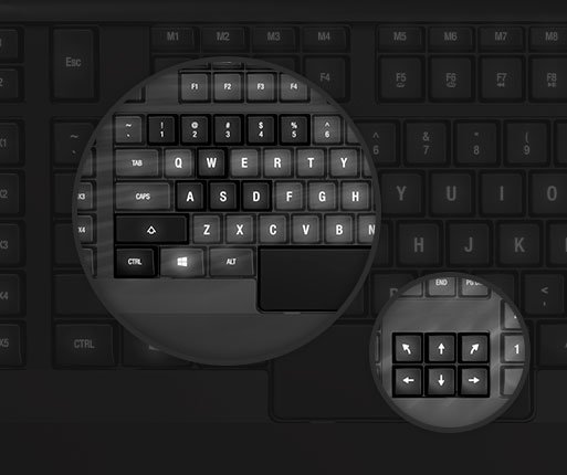 SUPORT ANTI-GHOSTING EXCEPTIONAL SteelSeries Apex 300 ofera suport anti-ghosting pentru 20 de taste localizate in zonele cele mai intens folosite in jocuri. Din cele 20, poti apasa simultan 6 taste cu siguranta inregistrarii comenzilor dorite si fara sa blochezi tastatura. Lista tastelor cu suport anti-ghosting a fost atent creata de inginerii SteelSeries si include cele mai utilizate taste in jocuri: 1, 2, 3, 4, 5, Q, W, E, R, A, S, D, F, Left-Ctrl, Left Shift, Space si tastele sageti. |