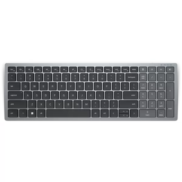 Dell Compact Multi-Device Wireless Keyboard – KB740, COLOR: Titan Gray, CONNECTIVITY: Wireless - 2.4GHz or Bluetooth 5.01, Microsoft Swift Pair2, TYPING MECHANISM: Scissors keys, PROGRAMMABLE KEYS: F1-F12, MULTIMEDIA KEYS: 3 Multimedia Keys (Vol+, Vol-, Speaker Mute), TILT ADJUSTMENT: 6° / 9°, PACKAGE CONTENT: Keyboard, USB Receiver, Batteries (2 x AAA), Documentation, DIMENSIONS: Height: 25.34 mm, Length: 363.2 mm, Width: 121.5 mm, WEIGHT: 506 g, 3y warranty
