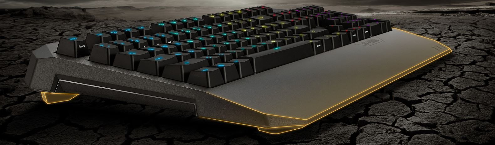 Tastatura TUF Gaming K5 ofera performante fara compromis si o durabilitate de exceptie. Echipata cu contacte TUF Gaming Mech-Brane - concepute sa furnizeze un raspuns tactil ferm la fiecare apasare - tastatura este gata sa ofere o experienta cu totul noua in joc. Contactele sunt montate intr-un cadru rezistent la varsarile accidentale de lichide, intarit cu un strat special de acoperire, certificat pentru utilizarea intensiva. K5 dispune, de asemenea, de iluminarea Aura Sync RGB pentru un stil personalizat, taste media dedicate pozitionate in partea stanga pentru un acces facil si un suport ergonomic integrat pentru un confort extins. |