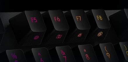 TASTE FUNCTIONALE COMPLETE Media si controlul iluminarii Comenzile pentru media si iluminare sunt la indemana. Folositi tasta FN pentru a controla volumul, play și pause, a dezactiva, a schimba modul de joc, a schimba efectele de iluminare etc. Folositi functia de comutare FN din Software-ul Logitech Gaming (LGS) si configurati tastele functionale pentru a efectua aceste comenzi alt in mod implicit. |