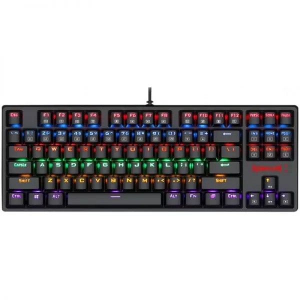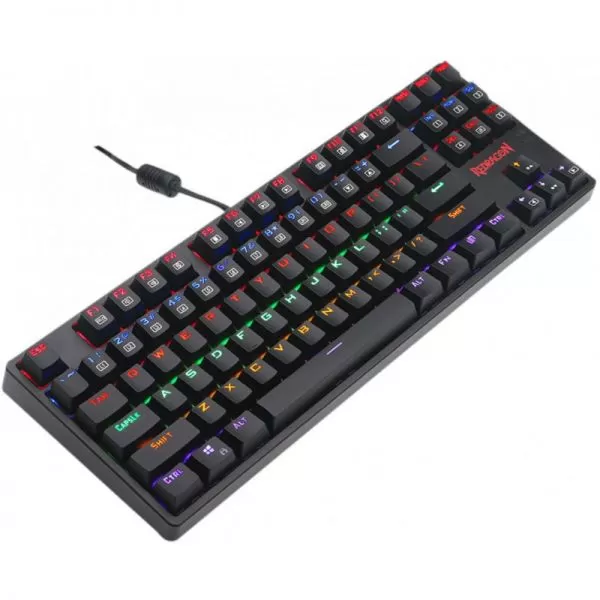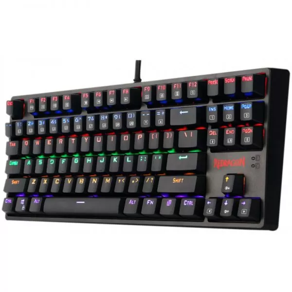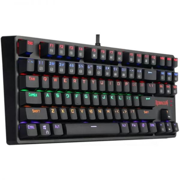 Tastatura gaming mecanica Redragon Daksa neagra iluminare rainbow, toate tastele fara conflict - 87 taste (n-key rollover), iluminare LED rainbow a tastelor (6 moduri de iluminare, reglarea intensitatii), 12 taste multimedia, tasta WIN poate fi dezactivata in timpul jocurilor, conector USB placat cu aur, USB