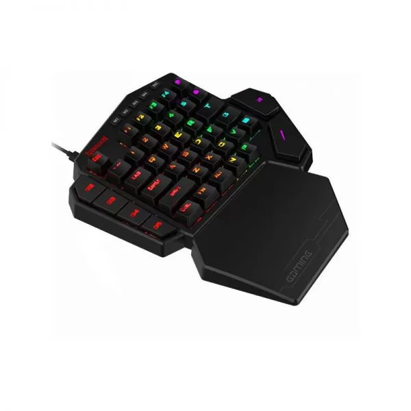 Tastatura gaming mecanica One-hand Redragon Diti neagra iluminare RGB, switch-uri albastre Outemu, sasiu de aluminiu, toate tastele fara conflict (n-key rollover), iluminare LED RGB a tastelor(5 teme de iluminare), 7 taste macro pre-programate, buton dedicat inregistrarii de noi Macro, hub USB cu un port USB 2.0, palmrest magnetic detasabil, lungime cablu: 1.4m, conector USB placat cu aur, USB
