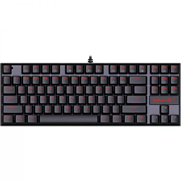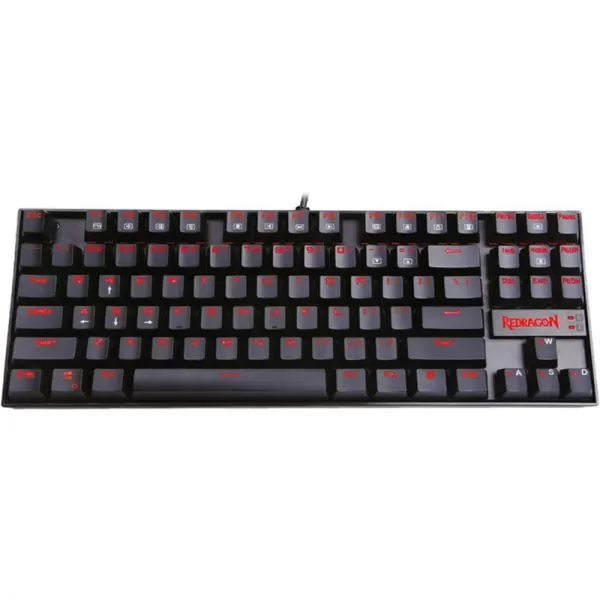 Tastatura gaming mecanica Redragon Kumara neagra iluminare rosie, toate tastele fara conflict - 87 taste (n-key rollover), iluminare LED rosie a tastelor (reglarea intensitatii, efecte breathing), 12 taste multimedia, tasta WIN poate fi dezactivata in timpul jocurilor, conector USB placat cu aur, USB