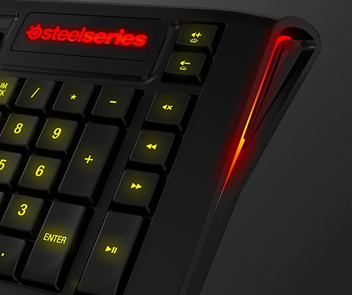 TASTE SUPLIMENTARE Pentru un control total, Apex 350 include o serie de taste suplimentare. Functiile multimedia sunt apelabile cu ajutorul tastelor dedicate, iar cele doua taste cursor aditionale fac miscarea in unghi mult mai usoara. Tasta SteelSeries permite accesarea functiilor speciale precum activarea si dezactivarea tastei Windows. |