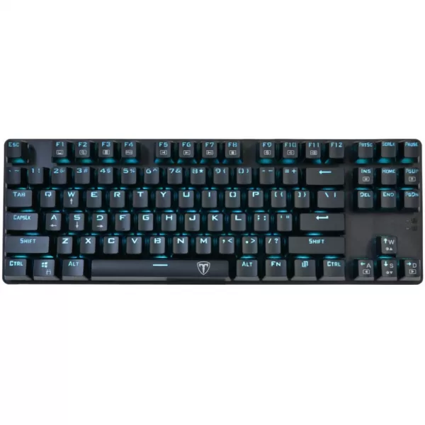 Tastatura mecanica T-Dagger Bora iluminare Ice Blue, toate tastele fara conflict (n-key rollover), switch-uri albastre Outemu, iluminare LED Ice Blue, 6 taste multimedia, tasta WIN poate fi dezactivata in timpul jocurilor, taste durabile (double shot inject), conector USB
