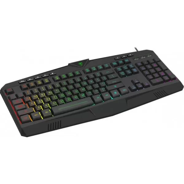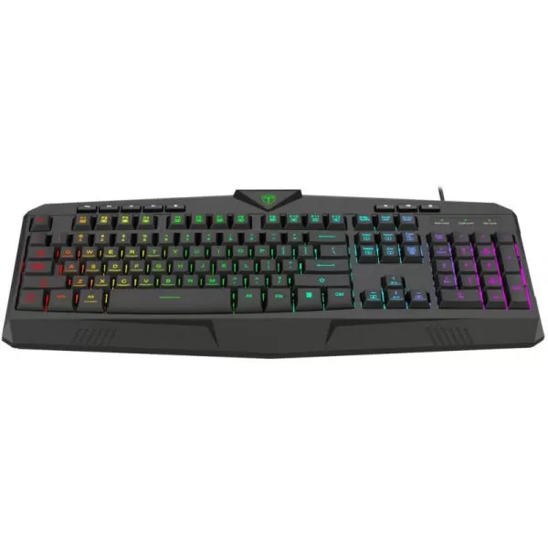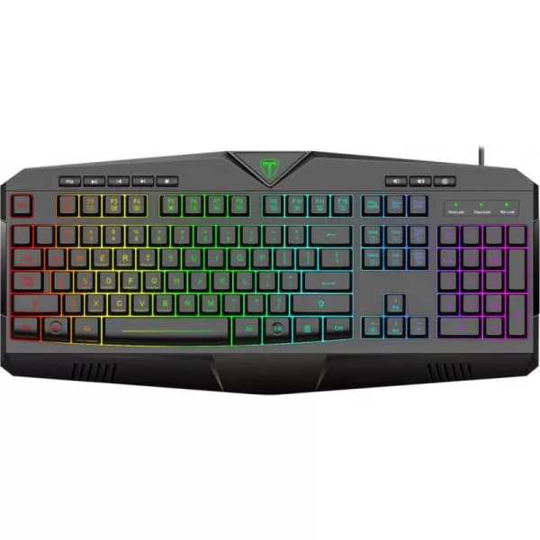 Tastatura gaming T-Dagger Submarine neagra iluminare RGB, 25 taste fara conflict (25-key rollover), iluminare LED RGB a tastelor, 8 taste multimedia, conector USB, dimensiuni: 446x203x38mm